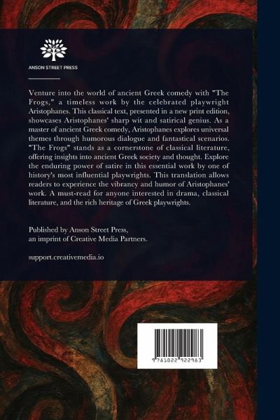 Venture into the world of ancient Greek comedy with "The Frogs," a timeless work by the celebrated playwright Aristophanes. This classical text, presented in a new print edition, showcases Aristophanes' sharp wit and satirical genius. As a master of ancient Greek comedy, Aristophanes explores universal themes through humorous dialogue and fantastical scenarios. "The Frogs" stands as a cornerstone of classical literature, offering insights into ancient Greek society and thought. Explore the enduring power of satire in this essential work by one of history's most influential playwrights. This translation allows readers to experience the vibrancy and humor of Aristophanes' work. A must-read for anyone interested in drama, classical literature, and the rich heritage of Greek playwrights. This work has been selected by scholars as being culturally important, and is part of the knowledge base of civilization as we know it. This work is in the public domain in the United States of America, and possibly other nations. Within the United States, you may freely copy and distribute this work, as no entity (individual or corporate) has a copyright on the body of the work. Scholars believe, and we concur, that this work is important enough to be preserved, reproduced, and made generally available to the public. We appreciate your support of the preservation process, and thank you for being an important part of keeping this knowledge alive and relevant.