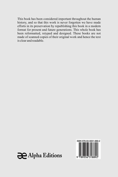 This book has been considered important throughout the human history, and so that this work is never forgotten we have made efforts in its preservation by republishing this book in a modern format for present and future generations. This whole book has been reformatted, retyped and designed. These books are not made of scanned copies and hence the text is clear and readable.