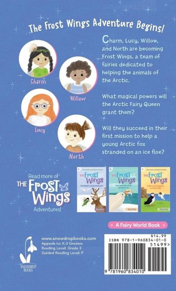 Charm, Lucy, Willow, and North are becoming Frost Wings, a team of fairies dedicated to helping the animals of the Arctic. What magical powers will the Arctic Fairy Queen grant them? Will they succeed in their first mission to help a young Arctic fox stranded on an ice floe? About the Series: The Frost Wings is an illustrated chapter book series filled with adventure, fairies, Arctic animals, and teamwork. Features: · An illustration on every page, featuring the adventures of four fairies known as the Frost Wings. · New Arctic animals in every book, showcasing the fascinating world of the Arctic. · Fast-paced plots and short cliff-hanger chapters to engage independent readers. · Wholesome and engaging stories to read aloud to younger children interested in longer texts. Reading Level: · Lexile Measure: 570L · Guided Reading Level: 3rd Grade (Level P) · ATOS: 4.1