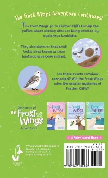 The Frost Wings go to Feather Cliffs to help the puffins whose nesting sites are being wrecked by mysterious landslides. While there, they discover that small Arctic birds known as snow buntings have gone missing. Will they solve the greater mysteries of Feather Cliffs? ¿¿About the Series: The Frost Wings is an illustrated chapter book series filled with adventure, fairies, Arctic animals, and teamwork. Features: · An illustration on every page, featuring the adventures of four fairies known as the Frost Wings. · New Arctic animals in every book, showcasing the fascinating world of the Arctic. · Fast-paced plots and short cliff-hanger chapters to engage independent readers. · Wholesome and engaging stories to read aloud to younger children interested in longer texts. Reading Level: · Lexile Measure: 500L · Guided Reading Level: 3rd Grade (Level P) · ATOS: 3.8