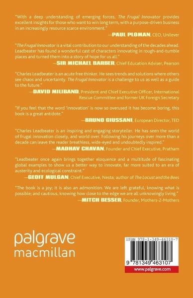 'Frugal Innovation is a vital contribution to our understanding of the decades ahead. The analysis is compelling; the solutions to the challenges of the 21st century, which sometimes seem overwhelming, are less likely to be found in western laboratories and more likely to be found in the rough-and-tumble suburbs of Lagos, Karachi or São Paulo. Charles Leadbeater has found a wonderful cast of characters innovating in places such as this and turned them into a story of hope for us all.'