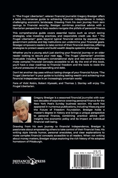 In "The Frugal Libertarian", veteran financial journalist Gregory Bresiger offers a bold, no-nonsense guide to achieving financial independence in today's challenging economic landscape. Drawing from his own journey from zero savings to financial security, Bresiger combines practical advice with a libertarian perspective to help readers navigate the pitfalls of personal finance. This comprehensive guide covers essential topics such as smart saving strategies, wise investing practices, and responsible credit use. But " The Frugal Libertarian" goes beyond typical financial advice by exposing how government policies and big institutions can undermine your financial goals. Bresiger empowers readers to take control of their financial destinies, offering strategies to protect assets and build wealth despite systemic challenges. Whether you're a young adult just starting your financial journey or an older reader looking to secure your nest egg, " The Frugal Libertarian" provides invaluable insights. Bresiger's conversational style and real-world examples make complex financial concepts accessible to all. By the end of this book, you'll have a clear roadmap to financial freedom and the tools to resist the cultural pressures of overspending and debt. Don't let another day pass without taking charge of your financial future. "The Frugal Libertarian" is your guide to building lasting wealth and achieving true financial independence in an increasingly uncertain world. Fans of Vicki Robin, Robert Kiyosaki, and Thomas J. Stanley will enjoy The Frugal Libertarian.