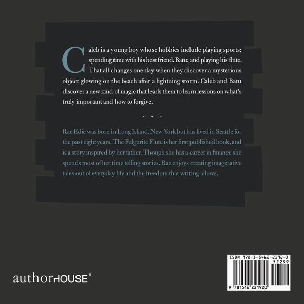 Caleb is a young boy whose hobbies include playing sports; spending time with his best friend, Batu; and playing his flute. That all changes one day when they discover a mysterious object glowing on the beach after a lightning storm. Caleb and Batu discover a new kind of magic that leads them to learn lessons on what?s truly important and how to forgive.