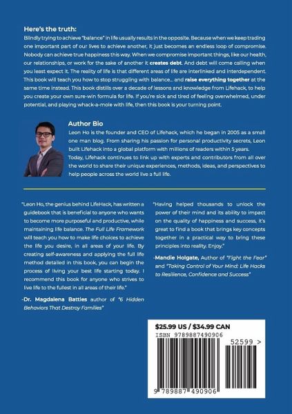 The Full life Framework: The Essential Guide introduces a universal breakthrough framework to help you overcome whatever it is that is standing in the way of your goals. Presented in an easy to follow format, this book will enable anyone struggling in life to become the very best versions of themselves and teach you step-by-step how to lead a purposeful, healthier and more productive life without sacrifice. There's a common trope that to be successful in your life, you can't possibly have it all. Something has to be sacrificed. This is a damaging mindset that can leave one feeling totally unfulfilled in life and a victim to one's circumstances. This book explains that living without sacrifice is not only possible, but an essential component of leading a life of true happiness. About the Author: Leon Ho is the Founder and CEO of Lifehack, which he started in 2005 as a way to share his personal productivity hacks to make life easier. Since then, he has been listed as Business Week's #4 "Top 24 Young Asian Entrepreneurs" as he has grown Lifehack into one of the most read productivity, health and lifestyle websites in the world. With over 7 million monthly readers and with over 30,000 articles published at Lifehack, is now widely recognized as a productivity and management expert through his pioneering work at discovering, applying and spreading the secrets of personal development to the world.