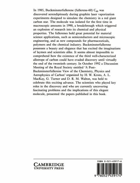In 1985, Buckminsterfullerene (fullerene-60) C(subscript 60) was discovered serendipitously during graphite laser vaporization experiments designed to simulate the chemistry in a red giant carbon star. The molecule was isolated for the first time in macroscopic amounts in 1990, a breakthrough which triggered an explosion of research into its chemical and physical properties. The fullerenes hold great potential for material science applications, such as semiconductors and microscopic engineering, and as new compounds for pharmaceuticals, polymers and the chemical industry. Buckminsterfullerene possesses a beauty and elegance that has excited the imaginations of laymen and scientists alike. It seems almost impossible to comprehend how the existence of the third well-characterized allotrope of carbon could have evaded discovery until virtually the end of the twentieth century. In October 1992 a Discussion Meeting of the Royal Society entitled 'A Post-Buckminsterfullerene View of the Chemistry, Physics and Astrophysics of Carbon' organized by H. W. Kroto, A. L. MacKay, G. Turner and D. R. M. Walton, was held to celebrate this exciting advance. The scientists who played key roles in the discovery and who are currently uncovering fascinating problems and the implications of this elegant molecule, presented the papers published in this book.