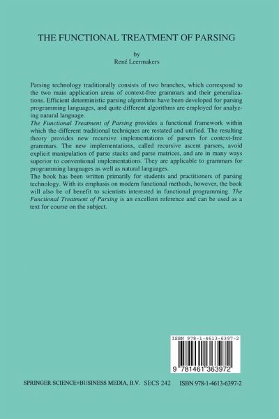 The book has been written primarily for students and practitioners of parsing technology. With its emphasis on modern functional methods, however, the book will also be of benefit to scientists interested in functional programming. The Functional Treatment of Parsing is an excellent reference and can be used as a text for a course on the subject.