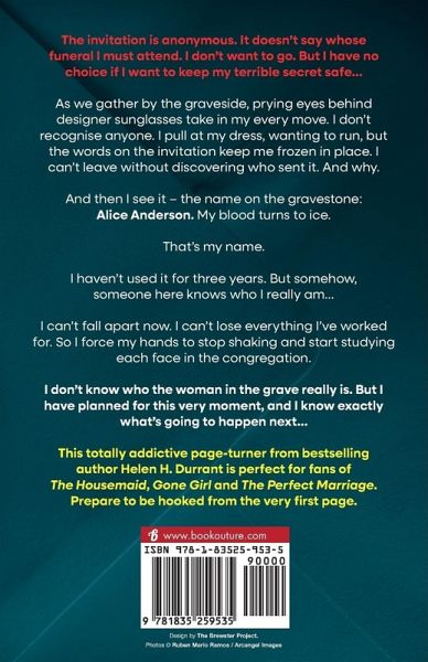 The invitation is anonymous. It doesn't say whose funeral I must attend. I don't want to go. But I have no choice if I want to keep my terrible secret safe... As we gather by the graveside, prying eyes behind designer sunglasses take in my every move. I don't recognise anyone. I pull at my dress, wanting to run, but the words on the invitation keep me frozen in place. I can't leave without discovering who sent it. And why. And then I see it - the name on the gravestone: Alice Anderson. My blood turns to ice. That's my name. I haven't used it for three years. But somehow, someone here knows who I really am... I can't fall apart now. I can't lose everything I've worked for. So I force my hands to stop shaking and start studying each face in the congregation. I don't know who the woman in the grave really is. But I have planned for this very moment, and I know exactly what's going to happen next... This totally addictive page-turner from bestselling author Helen H. Durrant is perfect for fans of The Housemaid, Gone Girl and The Perfect Marriage. Prepare to be hooked from the very first page. What readers are saying about The Funeral: 'Absolutely loved this!... I was hooked from the beginning... kept me guessing until the end and beyond!... it's a must-read!' NetGalley reviewer, ¿¿¿¿¿ 'I couldn't put it down! It kept me guessing and frantically turning the pages! Wow!... kept me on pins and needles for this whole book. I loved it!... drew me in immediately I couldn't put it down!... Love, love, loved it!' arcreviews_by_m, ¿¿¿¿¿ 'Love, love, loved this... A fab read with me screaming throughout... Got my heart racing.' Kelsey4440, ¿¿¿¿¿ 'I was drawn in right from the start... Had me on edge, waiting to find out what was going to happen... I held my breath!' Goodreads reviewer 'Absolutely brilliant!' Goodreads reviewer, ¿¿¿¿¿ 'A real page-turner.' Goodreads reviewer What readers are saying about Helen H. Durrant: 'Wow... A gripping crime thriller that had my heart racing... I didn't want to put it down.' Goodreads reviewer, ¿¿¿¿¿ 'I was hooked from the first few pages... Just brilliant.' Goodreads reviewer, ¿¿¿¿¿