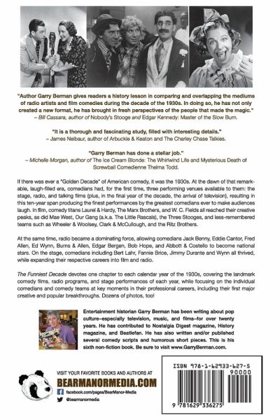 "Author Garry Berman gives readers a history lesson in comparing and overlapping the mediums of radio artists and film comedies during the decade of the 1930s. In doing so, he has not only created a new format, he has brought in fresh perspectives of the people that made the magic." - Bill Cassara, author of Nobody's Stooge and Edgar Kennedy: Master of the Slow Burn. "It is a thorough and fascinating study, filled with interesting details." - James Neibaur, author of Arbuckle & Keaton and The Charley Chase Talkies. "Garry Berman has done a stellar job." - Michelle Morgan, author of The Ice Cream Blonde: The Whirlwind Life and Mysterious Death of Screwball Comedienne Thelma Todd. If there was ever a "Golden Decade" of American comedy, it was the 1930s. At the dawn of that remarkable, laugh-filled era, comedians had, for the first time, three performing venues available to them: the stage, radio, and talking films (plus, in the final year of the decade, the arrival of television), resulting in this ten-year span producing the finest performances by the greatest comedians ever to make audiences laugh. In film, comedy titans Laurel & Hardy, The Marx Brothers, and W. C. Fields all reached their creative peaks, as did Mae West, Our Gang (a.k.a. The Little Rascals), the Three Stooges, and less-remembered teams such as Wheeler & Woolsey, Clark & McCullough, and the Ritz Brothers. At the same time, radio became a major entertainment force, allowing vaudevillians Jack Benny, Eddie Cantor, Fred Allen, Ed Wynn, George Burns & Gracie Allen, Edgar Bergen, Bob Hope, and Abbott & Costello to become national stars. On the stage, comedians including Bert Lahr, Fannie Brice, Jimmy Durante, and Wynn all thrived, while expanding their respective careers into films and radio. The Funniest Decade devotes one chapter to each calendar year of the 1930s, covering the landmark comedy films, radio programs, and stage performances of each year, while focusing on the individual comedians and comedy teams at key moments in their professional careers, including their first major creative and popular breakthroughs. Dozens of photos, too! Entertainment historian Garry Berman has been writing about pop culture¿especially television, music, and films¿for over twenty years. He has contributed to Nostalgia Digest magazine, History magazine, and Beatlefan. He has also written and/or published several comedy scripts and humorous short pieces. This is his sixth non-fiction book.