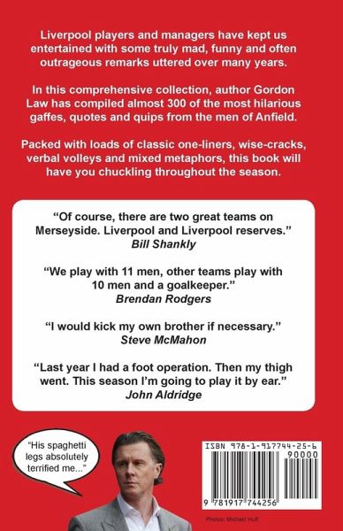 Liverpool FC players and managers have kept us entertained with some truly mad, funny and often outrageous remarks uttered over many years. In this comprehensive collection, author Gordon Law has compiled almost 300 of the most hilarious gaffes, quotes and quips from the men of Anfield. Packed with loads of classic one-liners, wise-cracks, verbal volleys and mixed metaphors, this book will have Liverpool Football Club fans chuckling throughout the season.