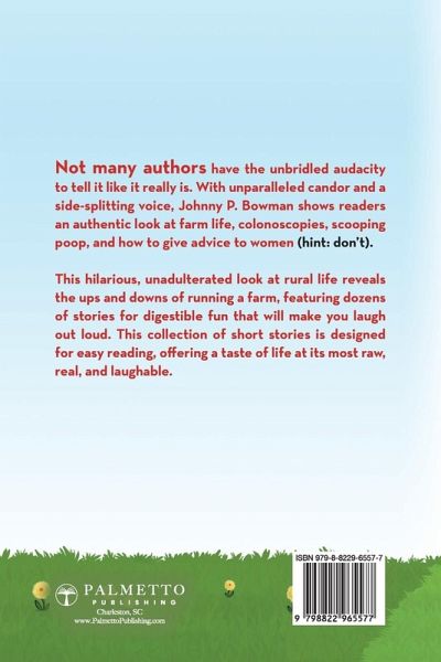 In this hilarious book about farm life, dive into the wild, chaotic experiences with labor and the land that shape the people who have them-for fans of Jeff Foxworthy and Bill Engvall. Farm life can be a drag-so it's best to have a sense of humor. That's author Johnny P. Bowman's philosophy, now put to the page in a side-splitting collection of short stories about his rural adventures. With an unbridled sense of mirth, Johnny tells the story like it is, unmasking colonoscopies, poop scooping, and the ups and downs of relationships. Bowman's anecdotes, brimming with wit, showcase the unpredictability of life. With unmatched candor and a penchant for finding the humor in every situation, Bowman invites readers into his untamed and untarnished world. This hilarious and free-spirited collection of stories offers a genuine glimpse into the struggles, triumphs, and laugh-out-loud insanity of rural living. Perfect for quick reading, these short stories deliver digestible fun-whether you're a seasoned veteran of the great outdoors or a city slicker dreaming of the simple life. This collection promises a refreshing perspective on the everyday adventures of rural existence.