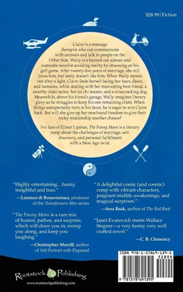 Claire is a massage therapist who can communicate with animals and talk to people on the Other Side. Wally is a burned out adman and wannabe novelist avoiding reality by obsessing on his golf game. After twenty-five years of marriage, she still loves him, but lately doesn't like him. When Wally moves out after a fight, Claire finds herself facing her fears, flaws, and fantasies, while dealing with her man-eating best friend, a wealthy older suitor, her tai chi master, and a wisecracking dog. Meanwhile, above his friend's garage, Wally imagines literary glory as he struggles to keep his one remaining client. When things unexpectedly turn in his favor, he is eager to win Claire back. But will she give up her newfound freedom to give their rocky relationship another chance? For fans of Elinor Lipman and Jennifer Weiner, The Funny Moon is a literary romp about the challenges of marriage, self-discovery, and personal fulfillment with a New Age twist.
