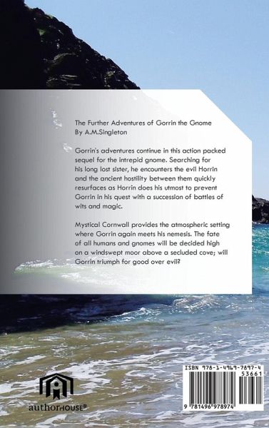 The Further Adventures of Gorrin the Gnome By A.M.Singleton Gorrin's adventures continue in this action packed sequel for the intrepid gnome. Searching for his long lost sister, he encounters the evil Horrin and the ancient hostility between them quickly resurfaces as Horrin does his utmost to prevent Gorrin in his quest with a succession of battles of wits and magic. Mystical Cornwall provides the atmospheric setting where Gorrin again meets his nemesis. The fate of all humans and gnomes will be decided high on a windswept moor above a secluded cove; will Gorrin triumph for good over evil?