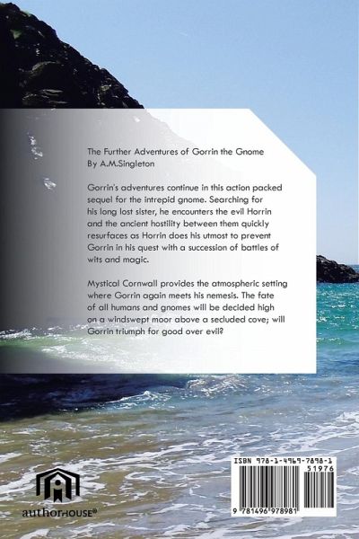 The Further Adventures of Gorrin the Gnome By A.M.Singleton Gorrin's adventures continue in this action packed sequel for the intrepid gnome. Searching for his long lost sister, he encounters the evil Horrin and the ancient hostility between them quickly resurfaces as Horrin does his utmost to prevent Gorrin in his quest with a succession of battles of wits and magic. Mystical Cornwall provides the atmospheric setting where Gorrin again meets his nemesis. The fate of all humans and gnomes will be decided high on a windswept moor above a secluded cove; will Gorrin triumph for good over evil?