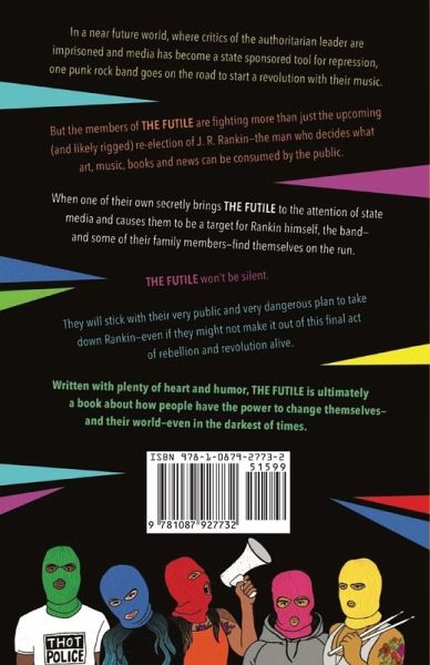 In a near future world, where critics of the authoritarian leader are imprisoned and media has become a state sponsored tool for repression, one punk rock band goes on the road to start a revolution with their music. But the members of The Futile are fighting more than just the upcoming (and likely rigged) re-election of J. R. Rankin-the man who decides what art, music, books and news can be consumed by the public. When one of their own secretly brings The Futile to the attention of state media and causes them to be a target for Rankin himself, the band-and some of their family members-find themselves on the run. They won't be silent. They will stick with their very public and very dangerous plan to take down Rankin-even if they might not make it out of this final act of rebellion and revolution alive. Written with plenty of humor and heart, The Futile is ultimately a book about how people have the power to change themselves-and their world-even in the darkest of times.