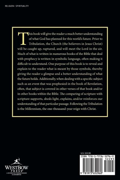 This book will give the reader a much better understanding of what God has planned for this world's future. Prior to Tribulation, the Church (the believers in Jesus Christ) will be caught up, raptured, and will meet the Lord in the air. Much of what is written in numerous books of the Bible that deal with prophecy is written in symbolic language, often making it difficult to understand. One purpose of this book is to reveal and explain to the reader what is meant by those symbols, thereby giving the reader a glimpse and a better understanding of what the future holds. Additionally, when dealing with a specific subject such as an event that was prophesied in the book of Revelation, often, that subject is covered in other verses of that book and/or in other books within the Bible. The comparing of scripture with scripture supports, sheds light, explains, and/or reinforces our understanding of that particular passage. Following the Tribulation is the Millennium, the one-thousand-year reign with Christ.