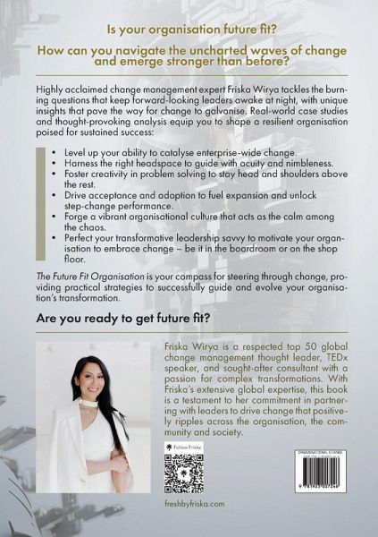 Is your organisation future fit? How can you navigate the uncharted waves of change and emerge stronger than before? Highly acclaimed change management expert Friska Wirya tackles the burning questions that keep forward-looking leaders awake at night, with unique insights that pave the way for change to galvanise. Real-world case studies and thought-provoking analysis equip you to shape a resilient organisation poised for sustained success: Level up your ability to catalyse enterprise-wide change. Harness the right headspace to guide with acuity and nimbleness. Foster creativity in problem solving to stay head and shoulders above the rest. Drive acceptance and adoption to fuel expansion and unlock step-change performance. Forge a vibrant organisational culture that acts as the calm among the chaos. Perfect your transformative leadership savvy to motivate your organisation to embrace change - be it in the boardroom or on the shop floor. The Future Fit Organisation is your compass for steering through change, providing practical strategies to successfully guide and evolve your organisation's transformation. Are you ready to get future fit?