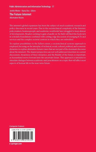 These shared perspectives are not well addressed elsewhere in current discussions. Awareness of these dynamics, and the fluidity of the future, is important, as humankind moves forward into the uncertain future. Due to the sociotechnical complexity of the Internet, policymakers, businesspeople, and academics worldwide have struggled to keep abreast of developments. This volume's approach is intended to stimulate dialogue between academics andpractitioners on a topic that will affect most aspects of human life in the near-term future.