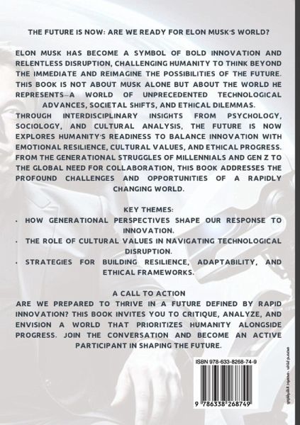 In a world racing toward the future, are we ready for what's coming? "The Future Is Now: Are We Ready for Elon Musk's World?" dives deep into the heart of our modern paradox-how do we balance breathtaking innovation with the essence of our humanity? Written by Riham ElHawary, a Business Psychology Specialist and Behavior Analyst, this thought-provoking book takes readers on an urgent journey through the promises and perils of rapid technological change. Elon Musk's bold vision serves as both a catalyst and a mirror, reflecting not just what humanity can achieve but also what it risks losing. Through compelling stories, cultural insights, and psychological frameworks, this book challenges us to ask the hard questions: Are we prepared-not technologically, but emotionally and ethically-for a world transformed by AI, automation, and unprecedented disruption? From generational divides to global collaboration, "The Future Is Now" explores how individuals, leaders, and communities can navigate this uncharted terrain. With tools like the Harmony Model and the Convergence Spectrum, ElHawary offers actionable strategies to align progress with purpose, ensuring that no one is left behind in the rush forward. Blending scholarly research with real-world narratives-from Ahmed, a dreamer bridging Egypt's ancient heritage with futuristic ambition, to Sara, who finds stability amid digital chaos-this book speaks to the head and the heart. It calls on each of us to shape a future where innovation uplifts rather than alienates, connects rather than isolates. Part intellectual exploration, part call to action, "The Future Is Now" invites you to reflect, reimagine, and reclaim your role in shaping tomorrow. Because the future isn't something that happens to us-it's something we create together. Will you rise to the challenge?