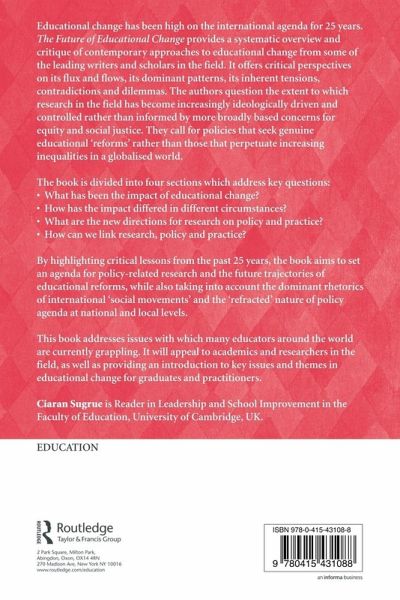 This timely book provides a systematic overview and critique of contemporary approaches to educational change from some of the best-known writers and scholars in the field, including Andy Hargreaves, Larry Cuban, Ivor Goodson, Jeannie Oakes, Milbrey McLaughlin, Judyth Sachs and Ann Liebermann. Divided into four sections, the book addresses the key themes: What has been the impact of educational change? How has the impact differed in different circumstances? What are the new directions for research on policy and practice? How can we link research, policy and practice? By highlighting critical lessons from the past, the book aims to set an agenda for policy-related research and the future trajectories of educational reforms, while also taking into account the dominant rhetorics of international 'social movements' and the 'refracted' nature of policy agenda at national and local levels. This book addresses issues which with many educators around the world are currently grappling. It will appeal to academics and researchers in the field, as well as providing an introduction to key issues and themes in Educational Change for graduates and practitioners.