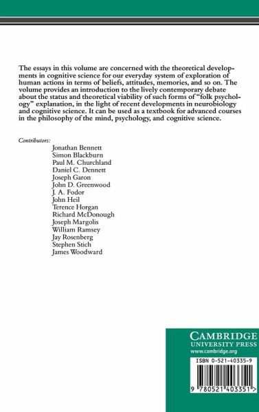 The essays in this volume are concerned with the theoretical developments in cognitive science for our everyday system of exploration of human actions in terms of beliefs, attitudes, memories, and so on. The volume provides an introduction to the lively contemporary debate about the status and theoretical viability of such forms of 'folk psychology' explanation, in the light of recent developments in neurobiology and cognitive science. It could be used as a textbook for advanced courses in the philosophy of the mind, psychology, and cognitive science.