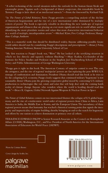 "In The Future of Global Relations, Terry Paupp provides a compelling analysis of the decline of American hegemonism and the rise of a new international order dominated by multiple centers of power. The book is especially valuable in describing the new landscape of regional organizations and alliances that are playing an ever more significant role in world affairs, and in identifying the more pluralistic norms and values that must characterize international behavior a world of multiple, interdependent actors." - Michael Klare, Five College Professor, Hampshire College, Amherst