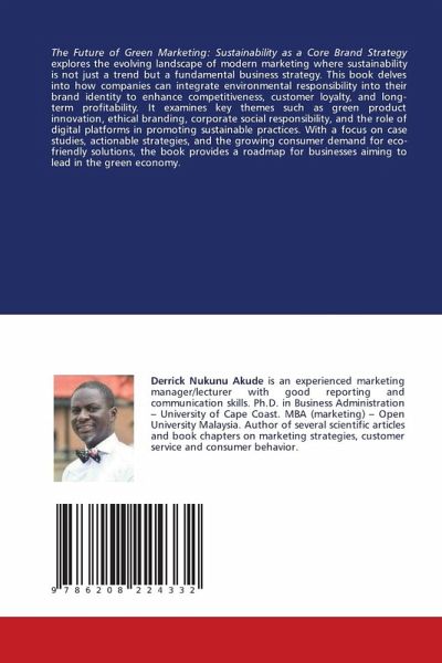The Future of Green Marketing: Sustainability as a Core Brand Strategy explores the evolving landscape of modern marketing where sustainability is not just a trend but a fundamental business strategy. This book delves into how companies can integrate environmental responsibility into their brand identity to enhance competitiveness, customer loyalty, and long-term profitability. It examines key themes such as green product innovation, ethical branding, corporate social responsibility, and the role of digital platforms in promoting sustainable practices. With a focus on case studies, actionable strategies, and the growing consumer demand for eco-friendly solutions, the book provides a roadmap for businesses aiming to lead in the green economy.