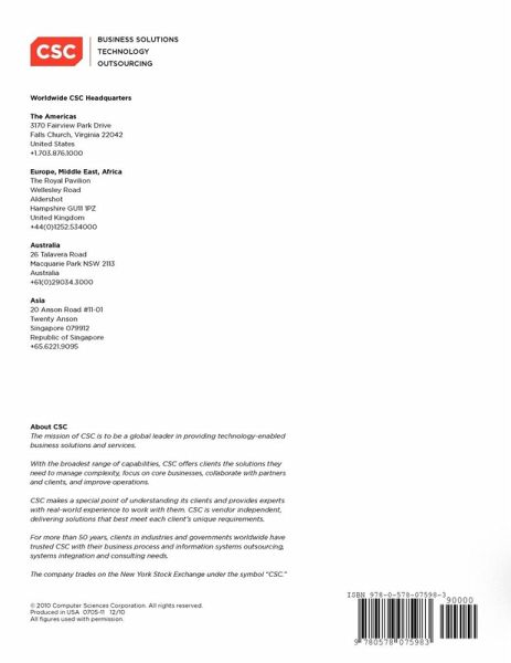 Healthcare is ripe for disruptive innovation. CSC takes a holistic view of healthcare, with the patient at the center, and identifies 5 trends that will re-shape the industry. Healthcare is moving from a care-first to a wellness-first perspective via the efforts and technologies in these trends: ¿E-Power to the Patient - Patients take on a larger, more active role in managing their wellness and health. ¿Earlier Detection - Earlier detection maximizes options for successful treatment, leading to a speedier return to good health. ¿High-Tech Healing - New technologies can significantly boost outcomes and quality of life. ¿Resources: More, but Different - Solving the healthcare resource puzzle requires new players and new care models. ¿Global Healthcare Ecosystem Emerges - More information, more connected, leads to better care and better research. This report targets patients, providers, healthcare businesses, technology companies and industry gurus. Learn how you can be part of the change.