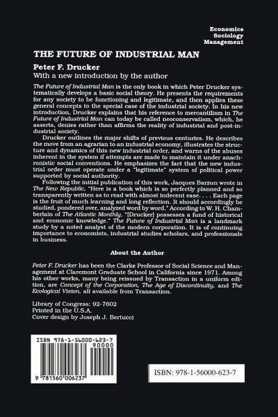 The Future of Industrial Man is the only book by Peter Drucker in which he systematically develops a basic social theory. He presents the requirements for any society to be functioning and legitimate, and then applies these general concepts to the special case of the industrial society. In his new introduction, Drucker explains that his reference to mercantilism in The Future of Industrial Man can today be called neoconservatism, which, he asserts, denies rather than affirms the reality of industrial and postindustrial society. Drucker outlines the major shifts of previous centuries. He describes the move from an agrarian to an industrial economy, illustrates the structure and dynamics of this new industrial order, and warns of the abuses inherent in the system if attempts are made to maintain it under anachronistic social conventions. He emphasizes the fact that the new industrial order must operate under a "legitimate" system of po-litical power supported by social authority. He discusses the particular roles of the owners, the workers, the managers-the corporation itself-as he pinpoints the problem that he considers the most central and the most critical: how to maintain the continuing freedom of the individual in an increasingly intricate, bureaucratized world. Following the initial publication of this work, Jacques Barzun wrote in The New Republic, "Here is a book which is so perfectly planned and so transparently written as to read with almost indecent ease. . . . Each page is the fruit of much learning and long reflection. It should accordingly by studied, pondered over, ana-lyzed word by word." According to W. H. Chamberlain of The Atlantic Monthly, "[Drucker] possesses a fund of historical and economic knowledge." The Future of Industrial Man is a landmark study by a noted analyst of the modern corporation. It is of continuing importance to economists, industrial studies scholars, and profes-sionals in business.