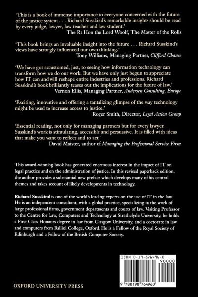 Written by a leading expert on computers and law, this important new book book shows exactly why and how information technology (IT) will radically alter the practice of law and the administration of justice. Beyond automating and streamlining traditional ways of providing legal advice, IT is re-engineering the entire legal process, resulting in legal products and information services whose focus will be dispute pre-emption rather than dispute resolution, and legal risk management rather than legal problem solving. With easy and inexpensive access available, IT will help integrate the law with business and domestic life. This book considers the implications, opportunities, and challenges for all concerned in the information society. The IT revolution cannot be ignored, and this book is essential reading for all those who would successfully adapt to the changes and challenges IT brings.
