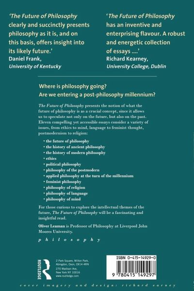 Where is philosophy going? Are we entering a post-philosophy millenium? The Future of Philosophy presents the notion of what the future of philosophy is as a crucial concept, since it allows us to speculate not only on the future, but also on the past. Eleven clear and concise essays consider a variety of issues, from ethics to mind,language to feminist thought, postmodernism to religion: *the future of philosophy *the history of ancient philosophy *the history of modern philosophy *ethics * political philosophy *philosophy of the postmodern *applied philosophy *feminist philosophy * philosophy of religion *philosophy of language *philosophy of mind For those curious to explore the intellectual themes of the future, The Future of Philosophy will be a fascinating and insightful read.