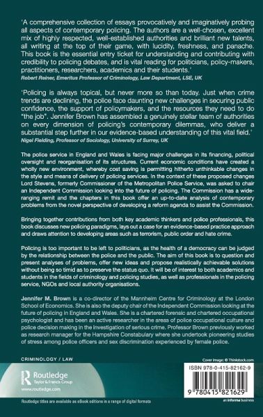 The police service in England and Wales is facing major challenges in its financing, political oversight and reorganisation of its structures. Current economic conditions have created a wholly new environment whereby cost saving is permitting hitherto unthinkable changes in the style and means of delivery of policing services. In the context of these proposed changes Lord Stevens, formerly Commissioner of the Metropolitan Police Service was asked to chair an Independent Commission looking into the future of policing. The Commission has a wide ranging remit and the papers in this book offer up-to-date analysis of contemporary problems from the novel perspective of developing a reform agenda to assist the Commission. Bringing together contributions from both key academic thinkers and police professionals, this book discusses new policing paradigms, lays out a case for an evidence-based practice approach and draws attention to developing areas such as terrorism, public order and hate crime. Policing is too important to be left to politicians, as the health of a democracy may be judged by the relationship between the police and the public. The aim of this book is to question and present analyses of problems offer new ideas and propose realistically achievable solutions without being so timid as to preserve the status quo. It will be of interest to both academics and students in the fields of criminology and policing studies, as well as professionals in the policing service, NGOs and local authority organisations.