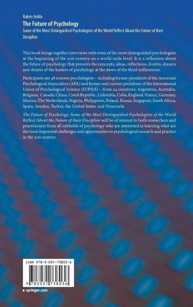 The Future of Psychology: Some of the Most Distinguished Psychologists of the World Reflect About the Future of their Discipline will be of interest toboth researchers and practitioners from all subfields of psychology who are interested in learning what are the most important challenges and opportunities to psychological research and practice in the 21st century.