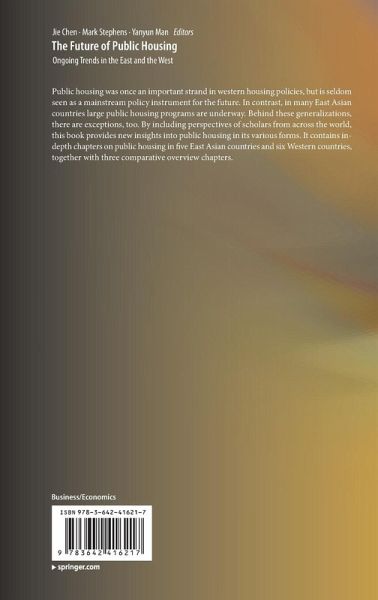 Public housing was once an important strand in western housing policies, but is seldom seen as a mainstream policy instrument for the future. In contrast, in many East Asian countries large public housing programs are underway. Behind these generalizations, there are exceptions, too. By including perspectives of scholars from across the world, this book provides new insights into public housing in its various forms. It contains in-depth chapters on public housing in five East Asian countries and six Western countries, together with three comparative overview chapters.