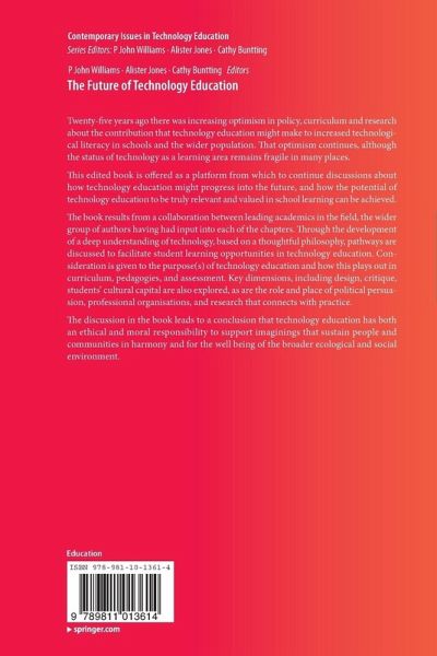 The book results from a collaboration between leading academics in the field, the wider group of authors having had input into each of the chapters. Through the development of a deep understanding of technology, based on a thoughtful philosophy, pathways are discussed to facilitate student learning opportunities in technology education. Consideration is given to the purpose(s) of technology education and how this plays out in curriculum, pedagogies, and assessment. Key dimensions, including design, critique, students' cultural capital are also explored, as are the role and place of political persuasion, professional organisations, and research that connects with practice.