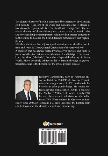 "Sotto i nostri occhi scorre la storia climatica del Pianeta Terra tra alternanza di periodi caldi e freddi. "Il signore dei venti e correnti", il Jet Stream, o corrente a getto della libera atmosfera, riveste un ruolo decisivo nei mutamenti climatici. Altri due elementi essenziali entrano a far parte della storia del clima: i poli e i vortici Artico e Antartico, che giocano un ruolo fondamentale per la penetrazione delle masse d'aria fredde verso sud, per equilibrare lo scarto termico fra le alte e le basse latitudini. Ma quale forza regola le variazioni di velocità e di direzione nel tempo e nello spazio della grande circolazione generale dell'atmosfera? Un interrogativo cha ha alimentato da sempre domande insolute e che trova la sua verità dall'astro che ha sempre affascinato e incuriosito il genere umano: la Luna, "la signora" da cui dipendono i destini climatici mondiali. E' la luna a pesare in maniera decisiva sul Jet Stream per la sua forza gravitazionale e a rappresentare la chiave di volta di tutto il processo climatico."