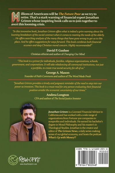 What do we do if everything we've worked for suddenly goes up in flames? We hope that someone will help us to rebuild our lives. In two sentences, that's the message of this book by personal finance expert Jonathan Grimm who just experienced that kind of life-threatening trauma when he and his family lost their California home and their entire neighborhood without warning in a raging wildfire. But there's hope even after such a disaster, if we remember and reclaim some of our core community values. We all can use such practical and inspiring wisdom now because the main crisis Jonathan Grimm warns about in these chapters is larger than the devastation of any fire or other natural disaster. The larger crisis that is shared by millions of still-young American adults is a looming retirement crisis. Due to deep flaws in our retirement system, individuals and families who assume they'll sail smoothly into those retirement years, instead, will fall below the poverty level. Even as the 2025 wildfires swept over his own home, Grimm had been researching and documenting the scope of this coming retirement crisis. In the year before his family was forced to dash from their home, he was just completing this book to show readers pragmatic solutions that can save our communities. Then, he found his family's neighborhood bursting into flame and saw families like his own fleeing with only what they could carry in their cars. Suddenly, Jonathan Grimm found himself, his wife, and their children relying on the same network of personal, family and community services that he encourages his readers to recognize and strengthen. We all will need those resources in the years ahead, he writes. Through vivid storytelling, historical analysis, and actionable solutions, The Future Poor:Explains how the traditional retirement model became unsustainable. Identifies the systemic barriers that prevent millions from achieving financial security. Offers practical and ethical strategies for individuals, congregations, and communities to address this crisis collectively. Reimagines retirement as part of a broader vision of social and communal health that takes seriously the values of quality healthcare, community support, and shared responsibility. Whether you're a policy maker, community leader, or individual seeking a sustainable path forward, The Future Poor is your guide to navigating and solving the retirement crisis. The problem is grim. The solution is not. Together, we can redefine retirement and build a future that works for everyone. Are you prepared for the looming retirement crisis? To whom will you turn if you suddenly lose everything? Today, we're facing more than flames-and together we can weather the crises as they come.