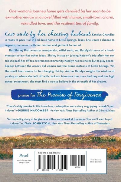 One woman's journey home gets derailed by her soon-to-be ex-mother-in-law in a novel filled with humor, small-town charm, rekindled love, and the resilient ties of family. Cast aside by her cheating husband, Katelyn Chandler is ready to pack it all in and drive home to Little Springs, Texas. She wants a chance to regroup, reconnect with her mother, and get back to her art. But Shirley Pratt-master manipulator, elitist snob, and Katelyn's terror of a live-in monster-in-law-has other ideas. Shirley insists on joining Katelyn's trip after her son tries to pack her off to a retirement community. Katelyn has no choice but to play peacekeeper between the ornery old woman and the proud matrons of Little Springs. Yet the small town seems to be changing Shirley. And as Katelyn weighs the wisdom of picking up where she left off with Jackson Mendoza, the town bad boy and her high school sweetheart, she must find a way to believe in the strength of her dreams.