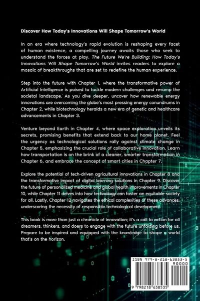 What if the technology of today could solve the greatest challenges of tomorrow? In this groundbreaking exploration of science, technology, and human ingenuity, The Future We're Building takes you on a journey through the most cutting-edge innovations shaping our world. From artificial intelligence revolutionizing industries, to biotechnology breakthroughs offering personalized healthcare solutions, and renewable energy advancements combating climate change - this book reveals how collaborative innovation is key to a brighter, more sustainable future. Explore the frontiers of: AI and Global Problem Solving - How machine learning is tackling climate change, healthcare, and global inequality. The Energy Revolution - Discover the latest in solar, wind, and energy storage technologies. Biotechnology - Uncover the power of genetic engineering and its life-saving potential. Space Exploration - Learn how innovations in space technology directly benefit life on Earth. Smart Cities and Sustainable Transport - See how technology is reshaping urban living and mobility. More than just a glimpse into the future, The Future We're Building is a call to action - showing how technology, when guided by ethics and inclusivity, can create a world of abundance, equity, and hope. If you're passionate about innovation, sustainability, and the limitless potential of human creativity, this book is your roadmap to tomorrow. Join the movement. Build the future.