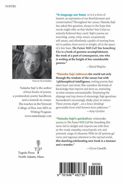 "Natasha Sajé's quicksilver, wideawake poems in The Future Will Call You Something Else never fail to delight and impress me with their at-the-ready empathy, encyclopedic wit, and prismatic range of allusions. With its 'all systems go' verve and vigorous attention to the myriad world, this dazzling, exhilarating new book is a treasure and a wonder." -Cyrus Cassells