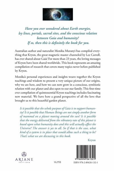 Have you ever wondered about Earth energies, ley lines, portals, sacred sites, and the conscious relation between Gaia and humanity? If so, then this is de¿nitely the book for you. Australian author and naturalist Monika Muranyi has compiled every-thing that Kryon, the great magnetic master channeled by Lee Carroll, has ever shared about Gaia! For more than 23 years, the loving messages of Kryon have been shared worldwide. This book represents an amazing compilation of research that covers many topics never before published by Kryon. Monika's personal experiences and insights weave together the Kryon teachings and wisdom to present a very unique picture of our origins, why we are here, and how we can now grow in a conscious, symbiotic relation with our planet and also open to our star family. This ¿rst-time ever compilation of quintessential Kryon teachings includes fascinating new material. We have here a grand perspective of all the love that brought us to this beautiful garden planet. Is it possible that the whole purpose of Gaia is to support humanity? Is it possible that Human Beings are not simply another form of mammal on a planet moving around the sun? Is it possible that the energy delivered from the vibratory rate of this planet is based upon what humanity does and this will actually affect the Universe? The answer is yes to all. So if that is the case, what kind of a system is in place that would allow such a thing to be?That's what we are discussing in this book. Kryon