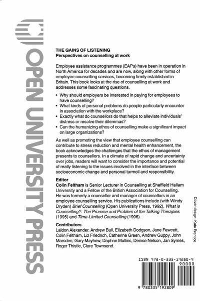 Employee assistance programmes (EAPs) have been in operation in North America for decades and are now, along with other forms of employee counselling services, becoming firmly established in Britain. This book looks at the rise of counselling at work and addresses some fascinating questions. * Why should employers be interested in paying for employees to have counselling? * What kinds of personal problems do people particularly encounter in association with the workplace? * Exactly what do counsellors do that helps to alleviate individuals' distress or resolve their dilemmas? * Can the humanising ethos of counselling make a significant impact on large organizations? As well as promoting the view that employee counselling can contribute to stress reduction and mental health enhancement, the book acknowledges the challenges that the ethos of management presents to counsellors. In a climate of rapid change and uncertainty over jobs, readers will want to consider the importance and potential of really listening to the issues involved in the interface between socioeconomic change and personal turmoil and responsibility.