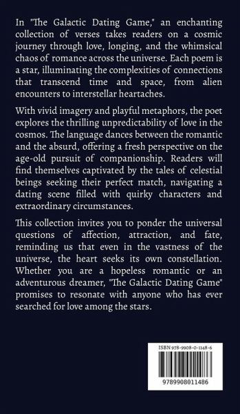 In "The Galactic Dating Game," an enchanting collection of verses takes readers on a cosmic journey through love, longing, and the whimsical chaos of romance across the universe. Each poem is a star, illuminating the complexities of connections that transcend time and space, from alien encounters to interstellar heartaches. With vivid imagery and playful metaphors, the poet explores the thrilling unpredictability of love in the cosmos. The language dances between the romantic and the absurd, offering a fresh perspective on the age-old pursuit of companionship. Readers will find themselves captivated by the tales of celestial beings seeking their perfect match, navigating a dating scene filled with quirky characters and extraordinary circumstances. This collection invites you to ponder the universal questions of affection, attraction, and fate, reminding us that even in the vastness of the universe, the heart seeks its own constellation. Whether you are a hopeless romantic or an adventurous dreamer, "The Galactic Dating Game" promises to resonate with anyone who has ever searched for love among the stars.