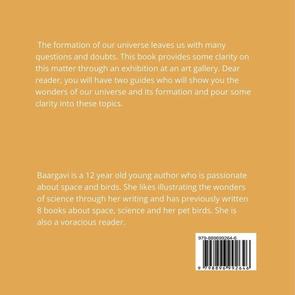 The formation of our universe leaves us with many questions and doubts. This book provides clarity on this matter through an exhibition at an art gallery. You will have two guides who will show you the wonders of our universe and its formation and pour some clarity into these topics.