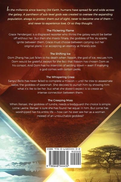 In the millennia since leaving Old Earth, humans have spread far and wide across the galaxy. A pantheon of sub-level gods was created to oversee the expanding population, always to protect them out of sight, never to become one of them - and never to experience love. Or so they thought.Collecting all four novellas from the Galactic Pantheon Series. First time in print. The Flickering FlameGrace Pendergast is a disgraced reporter who thinks the galaxy would be better off without her. But then she meets Finara, the goddess of fire. As sparks ignite between them, Grace must choose between carrying out her original plans - or accepting an eternity at Finara's side. The Shifting IceDom Zhang has just fallen to his death when Rasson, the god of ice, rescues him. Dom would be grateful, except for the fact that Rasson has chosen Dom as his consort. And Dom has no intention of settling down - even if marrying a god comes with certain perks. The Whispering GrassSanyul Bello has never failed to complete a mission - until he tries to assassinate Isabis, the goddess of savannah. She decides to punish him by showing him what it's like to be her, but what she doesn't expect is to create an intense connection between them. The Creeping MossWhen Renaei, the goddess of tundra, needs a bodyguard the choice is simple: Lorne Lavine. Renaei is sure she has found her equal in him. But Lorne has worshipped her his entire life - how can he ever see her as a woman instead of an untouchable goddess?