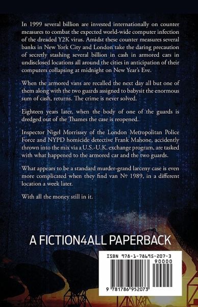 In 1999 several billion internationally are invested in counter measures to combat the much anticipated, widely dreaded world-wide Y2K computer virus. Amidst these counter measures several banks in New York and London take the daring precaution of secretly stashing several billion in cash in armored cars in secret locations around the cities in anticipation of their computers collapsing at midnight on New Year's Eve. When the virus doesn't materialize and the armored vans are recalled the next day all but one of them returns. Along with the two guards assigned to babysit the £600,000,000, van ¿ 1989 has vanished. The crime is never solved. Eighteen years later, when the body of one of the guards is dredged out of the Thames the case is reopened. Inspector Harold Morrissey of the London Metropolitan Police Service and NYPD homicide detective Frank Mahone, accidently thrown into the mix via a U.S.-U.K. exchange program, are tasked with finding out what happened to the armored car and the two guards. What appears to be a standard murder-grand larceny case is even more complicated when they find the van in a different location a week later. With the all money still in it. Technology is not inherently evil. But some men are!