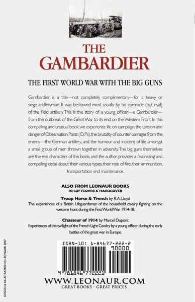 The Gambardier: the Experiences of a Battery of Heavy Artillery on the Western Front During the First World War The First World War with the big guns Gambardier is a title-not completely complimentary-for a heavy or siege artilleryman. It was bestowed most usually by his comrade (but rival) of the field artillery. This is the story of a young officer-a Gambardier-from the outbreak of the Great War to its end on the Western Front. In this compelling and unusual book, we experience life on campaign, the tension and danger of Observation Posts (O. Ps), the brutality of counter barrages from the enemy-the German artillery, and the humour and incident of life amongst a small group of men thrown together in adversity. The big guns themselves are the real characters of this book, and the author provides a fascinating and compelling detail about their various types, their rate of fire, their ammunition, transportation and maintenance.