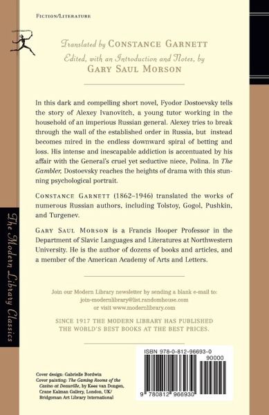 In this dark and compelling short novel, Fyodor Dostoevsky tells the story of Alexey Ivanovitch, a young tutor working in the household of an imperious Russian general. Alexey tries to break through the wall of the established order in Russia, but instead becomes mired in the endless downward spiral of betting and loss. His intense and inescapable addiction is accentuated by his affair with the General's cruel yet seductive niece, Polina. In The Gambler, Dostoevsky reaches the heights of drama with this stunning psychological portrait.