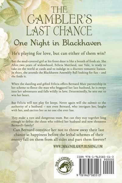 He's playing for love, but can either of them win? After two years of widowhood, Felicia Maitland, nee Vale, is ready to take on the world at cards and to indulge in a discreet romantic liaison. In short, she attends the Blackhaven Assembly Ball looking for fun - and she finds it. When the dazzling and gifted Felicia offers Bernard Muir partnership in her scheme to fleece the man who beggared her late husband, he is swept into her adventures and falls wildly in love. Determinedly, he sets out to win her heart. But Felicia will not play for keeps. Never again will she submit to the authority of a husband - not even Bernard, who intrigues her, laughs with her, and excites her as no one else ever has. They make a rare and dangerous team. But can they stay together long enough to defeat the cheat who robbed her husband and now threatens Bernard's family? Can Bernard convince her not to throw away their last chance at happiness before the lethal schemes of their enemy fall on them from all sides and part them forever? One Night in Blackhaven The Captain's Old Love The Earl's Promised Bride The Soldier's Impossible Love The Gambler's Last Chance The Poet's Stern Critic The Rake's Mistake The Spinster's Last Dance