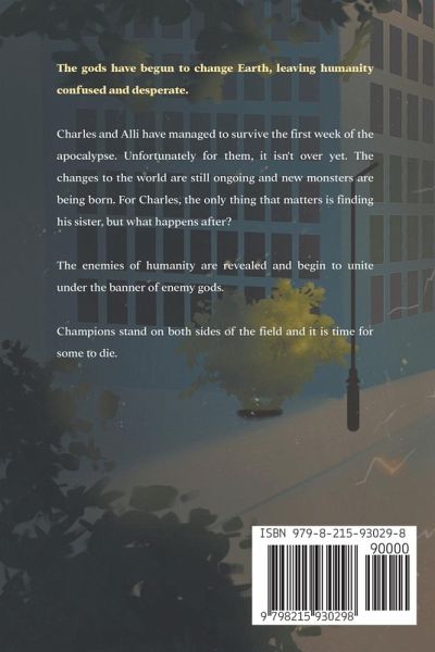 The gods have begun to change Earth, leaving humanity confused and desperate. Charles and Alli have managed to survive the first week of the apocalypse. Unfortunately for them, it isn't over yet. The changes to the world are still ongoing and new monsters are being born. For Charles, the only thing that matters is finding his sister, but what happens after? The enemies of humanity are revealed and begin to unite under the banner of enemy gods. Champions stand on both sides of the field and it is time for some to die. What readers are saying: ¿¿¿¿¿ 'I've read a few books with gods using humans to play their game, but this series so far feels completely original. I love the characters and the story so far. I can't wait for book three.' ¿¿¿¿¿ 'So much action, character growth, and entertaining interactions! I especially loved the town building aspects of this book. I can't wait for more!' ¿¿¿¿¿ 'Loved it! Need more.' ¿¿¿¿¿ 'After reading this book I have come to better appreciate independent authors. The heart and soul of you can easily be read through your books. This book was a great follow up to the first. Great story telling and a wicked cliff hanger. Awesome job.' ¿¿¿¿¿ 'A great second book in an interesting series. Can not wait til book 3 is finished. Proof that litrpg doesn't have to follow the same formulaic approach to be good.'