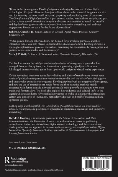 "Bring in the (news) games! Dowling's rigorous and enjoyable analysis of what digital technologies offer journalism and how journalism advances the potential for games is a vital read for knowing the news world today and preparing and predicting news of tomorrow. The Gamification of Digital Journalism is part cultural studies, part business analysis, and part techno science rooted in empirical analysis and expert interpretation to reveal the breadth and depth of news games in advocacy journalism, immersive storytelling, and audience engagement. Herein are tools for the future of journalism."